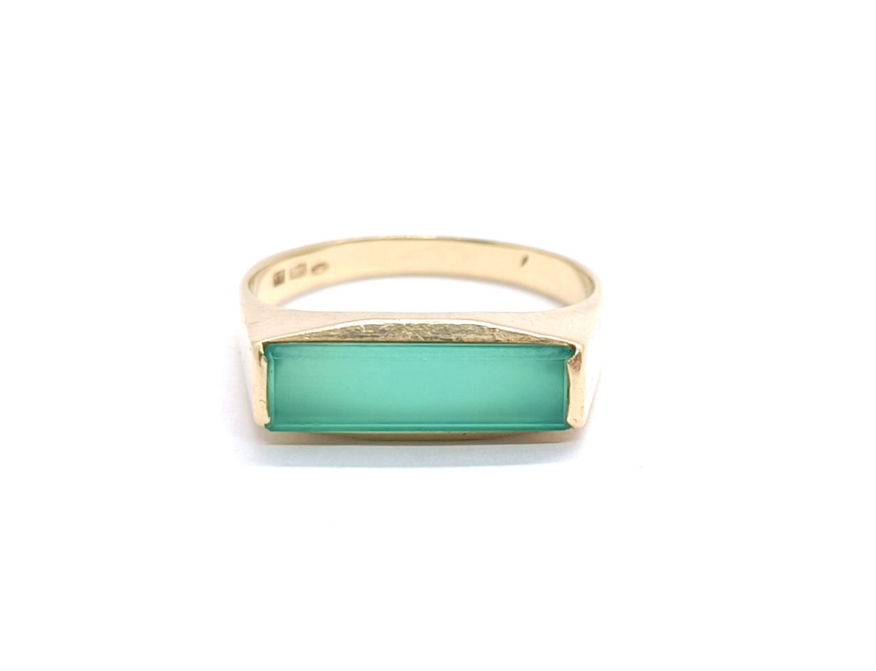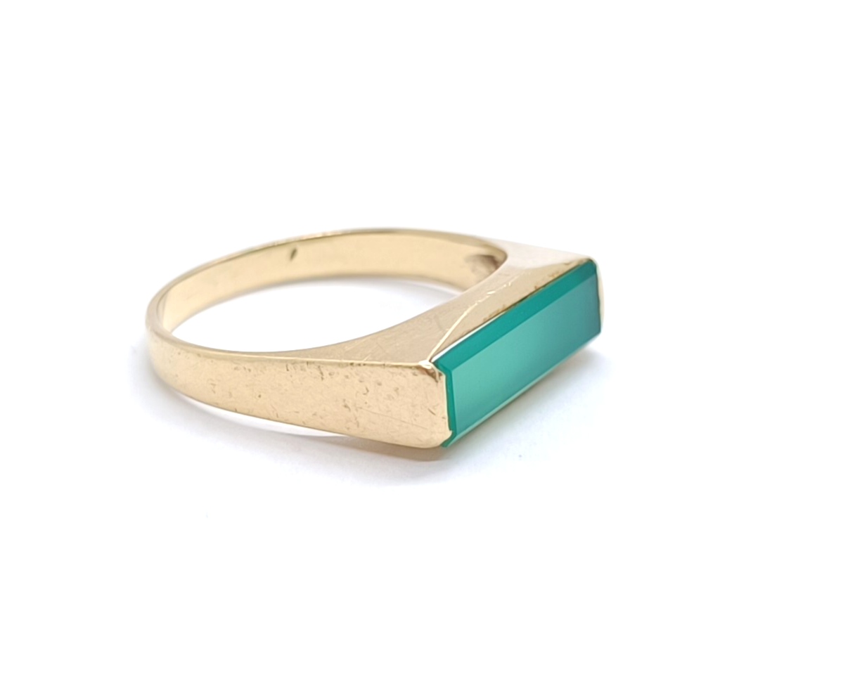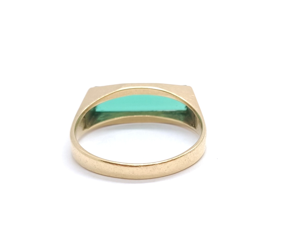 Zlatý pánský prsten s broušeným chryzoprasem, Au btto 4,8g/585/1000, Československo, 1. polovina 20. století; velikost prstenu 63