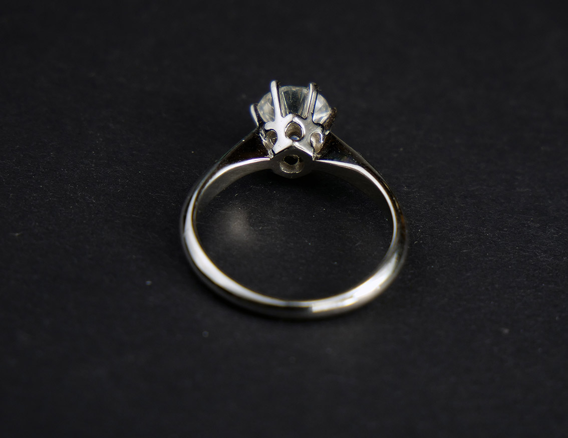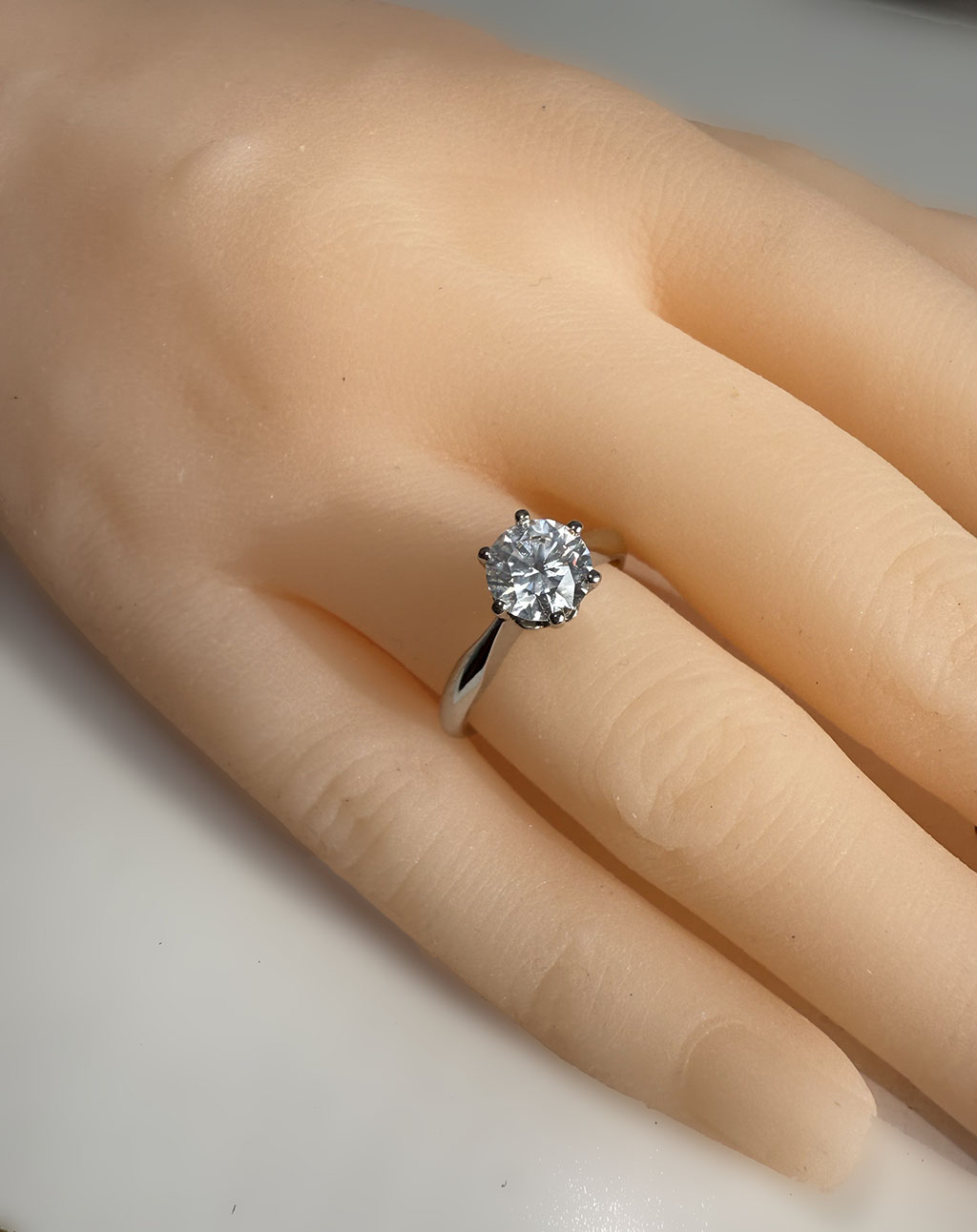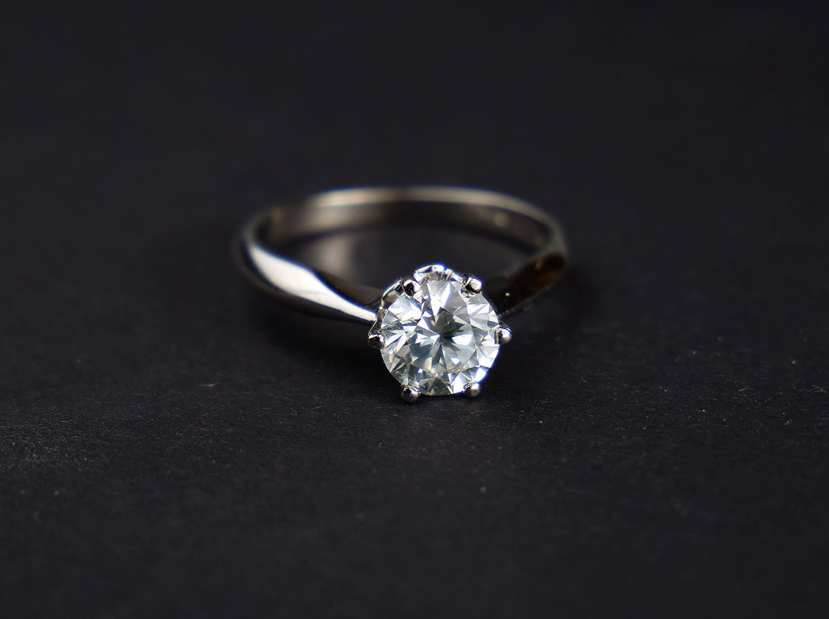 zlatý prsten s přírodním solitérním diamantem briliantového brusu, hmotnost diamantu je cca 1,13 ct, průměr 6,65 mm, čistota VS1, barva vzácně bílá D – E, brus very good, mléčný zákal, Au 3,21 g/585/1000, Evropa, kolem r. 2020, znalecký posudek, platný český punc, luxusní nenošený šperk, velikost prstenu 53, změna velikosti v ceně