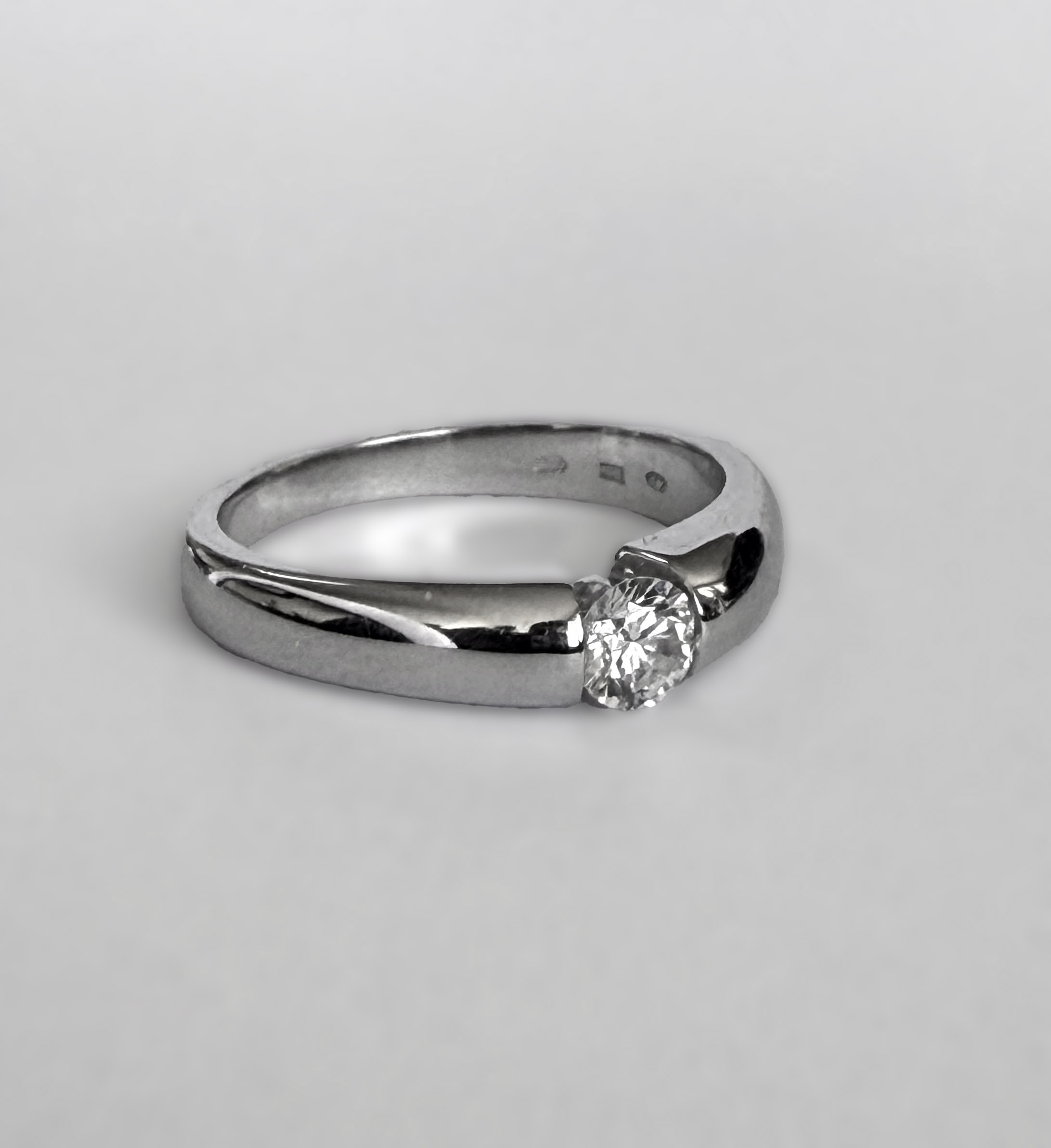 Zlatý prsten s diamantem briliantového brusu 0,25 ct, kvalita VVS, barva E-F. Celková hmotnost Au 3,92 g/585/1000, punc. Nenošený šperk ve výborném stavu, Česko, začátek 21. století, velikost prstenu 52.