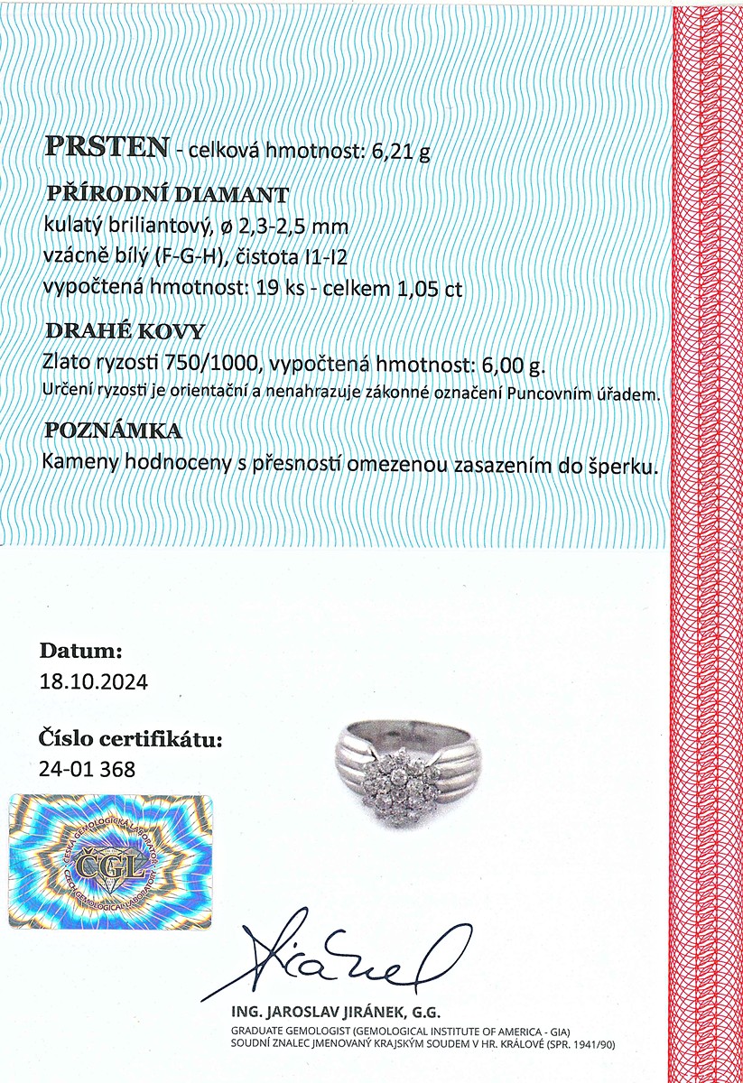 certifikát z gemologické laboratoře je součástí šperku