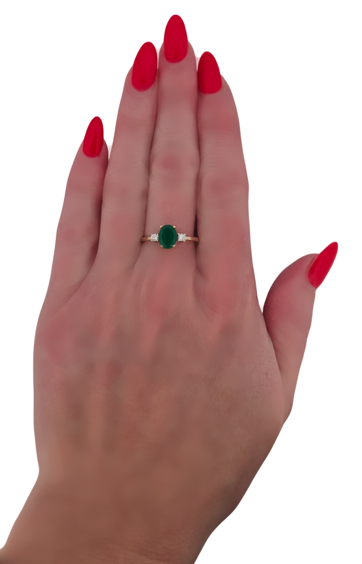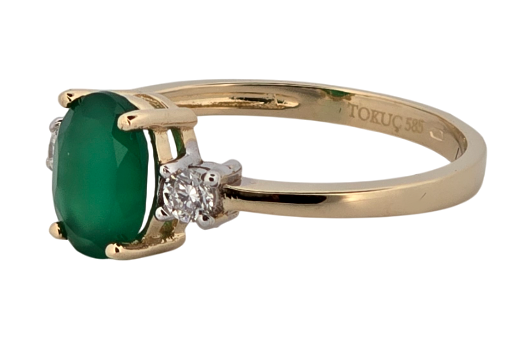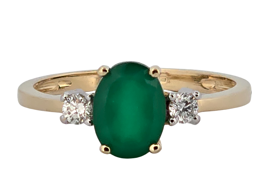 Popis: Zlatý prsten s přírodními diamanty a překrásně smaragdově zeleným přírodním chryzoprasem. Chryzopras je dobré kvality o celkové váze cca 1 ct. Dva kusy přírodních diamantů mají briliantový brus, jsou velmi dobré kvality a mají celkovou váhu cca 0,13 ct. Elegantní šperk vhodný pro každou příležitost.
