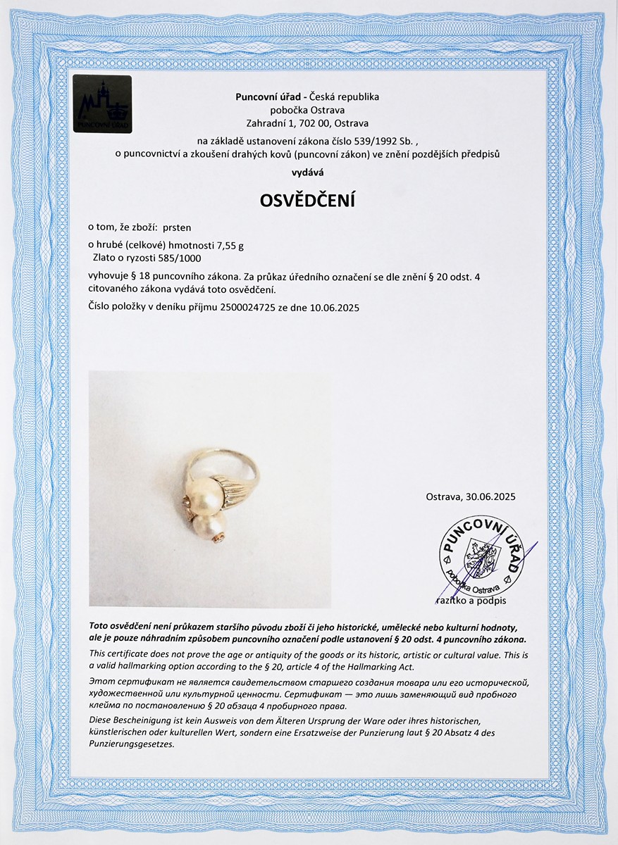 osvědčení puncovního úřadu