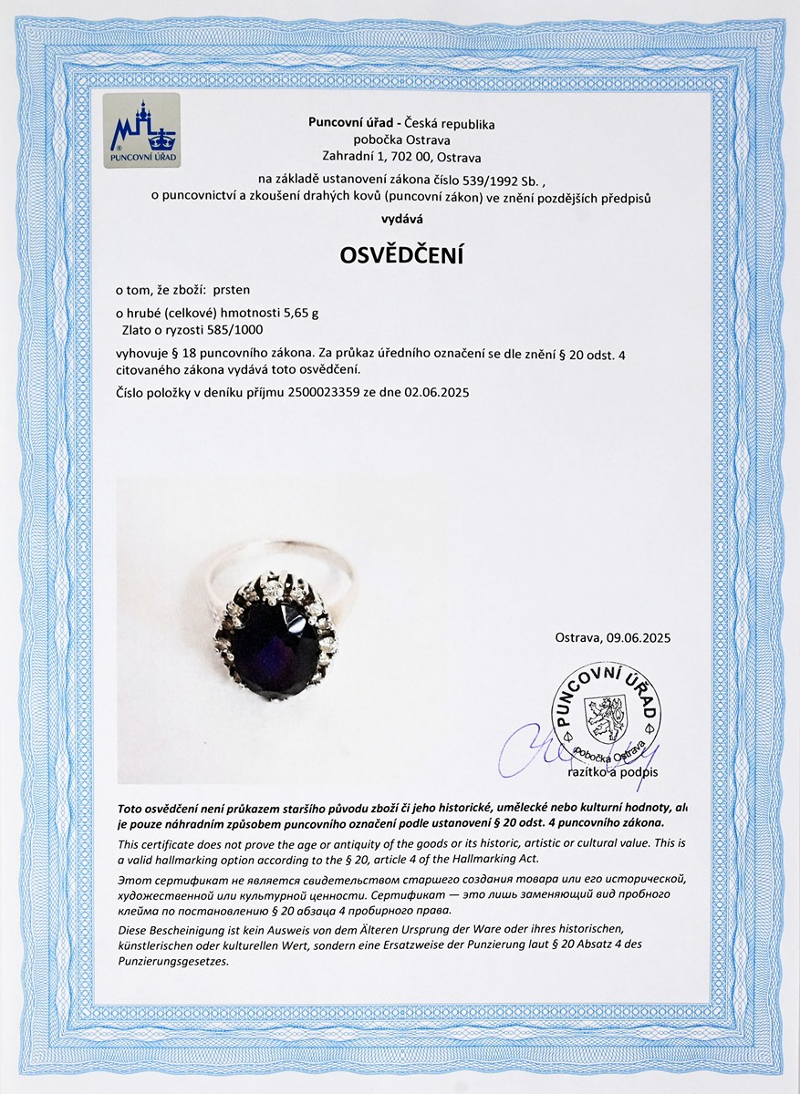 osvědčení puncovního úřadu