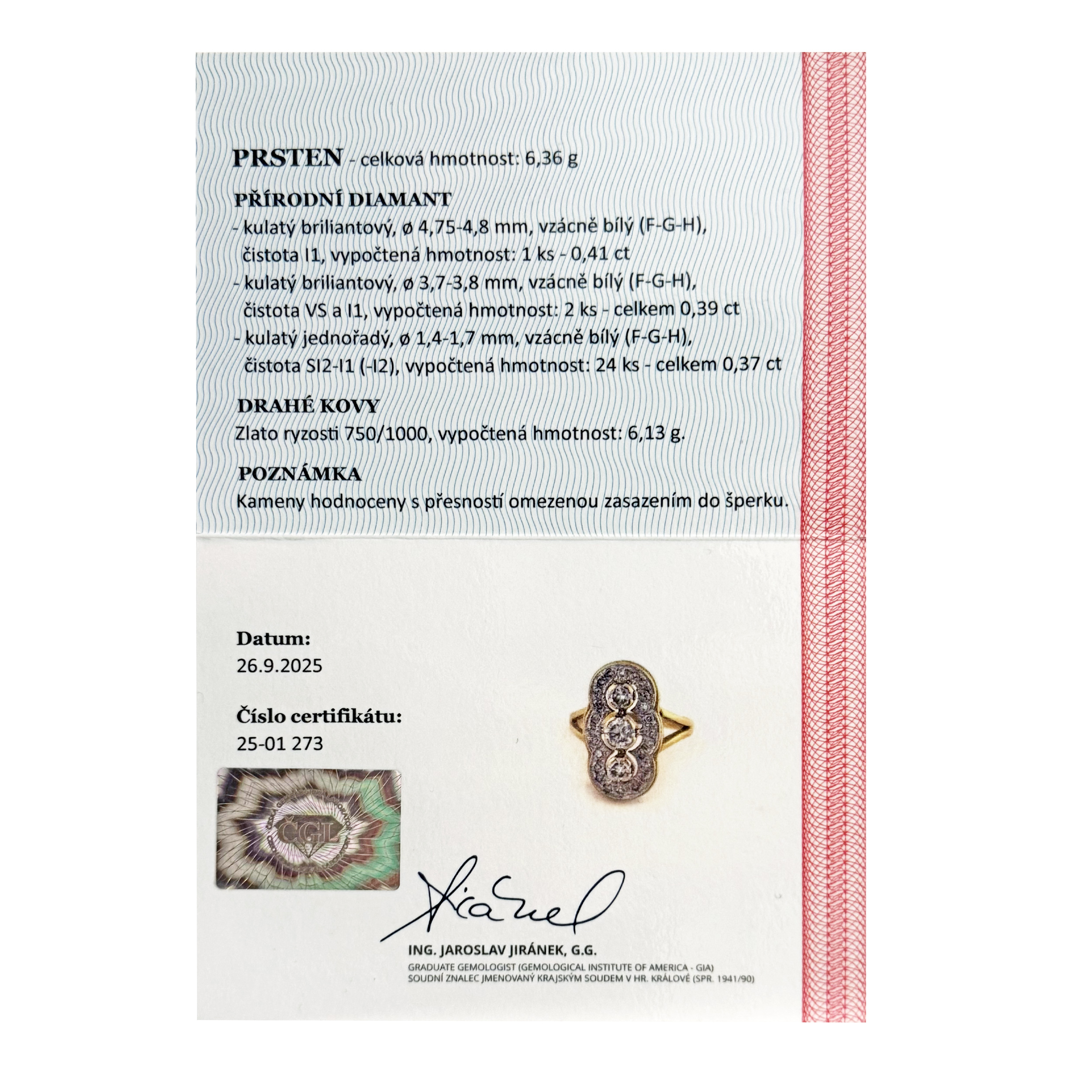 18 karátové zlato 750/1000, celková hmotnost 6,37 g