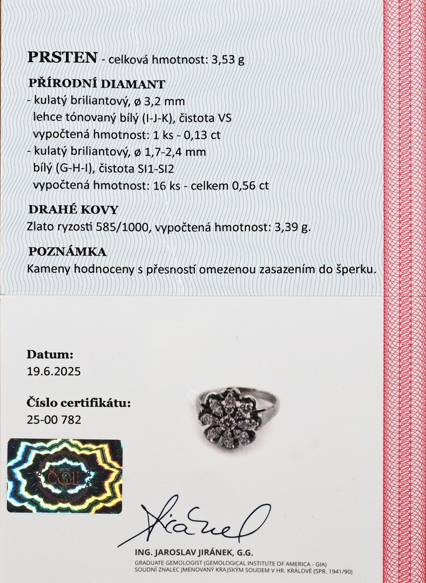 přírodní diamant 1 ks 0,13 ct, lehce tónovaný bílý (I-J-K), čistota VS