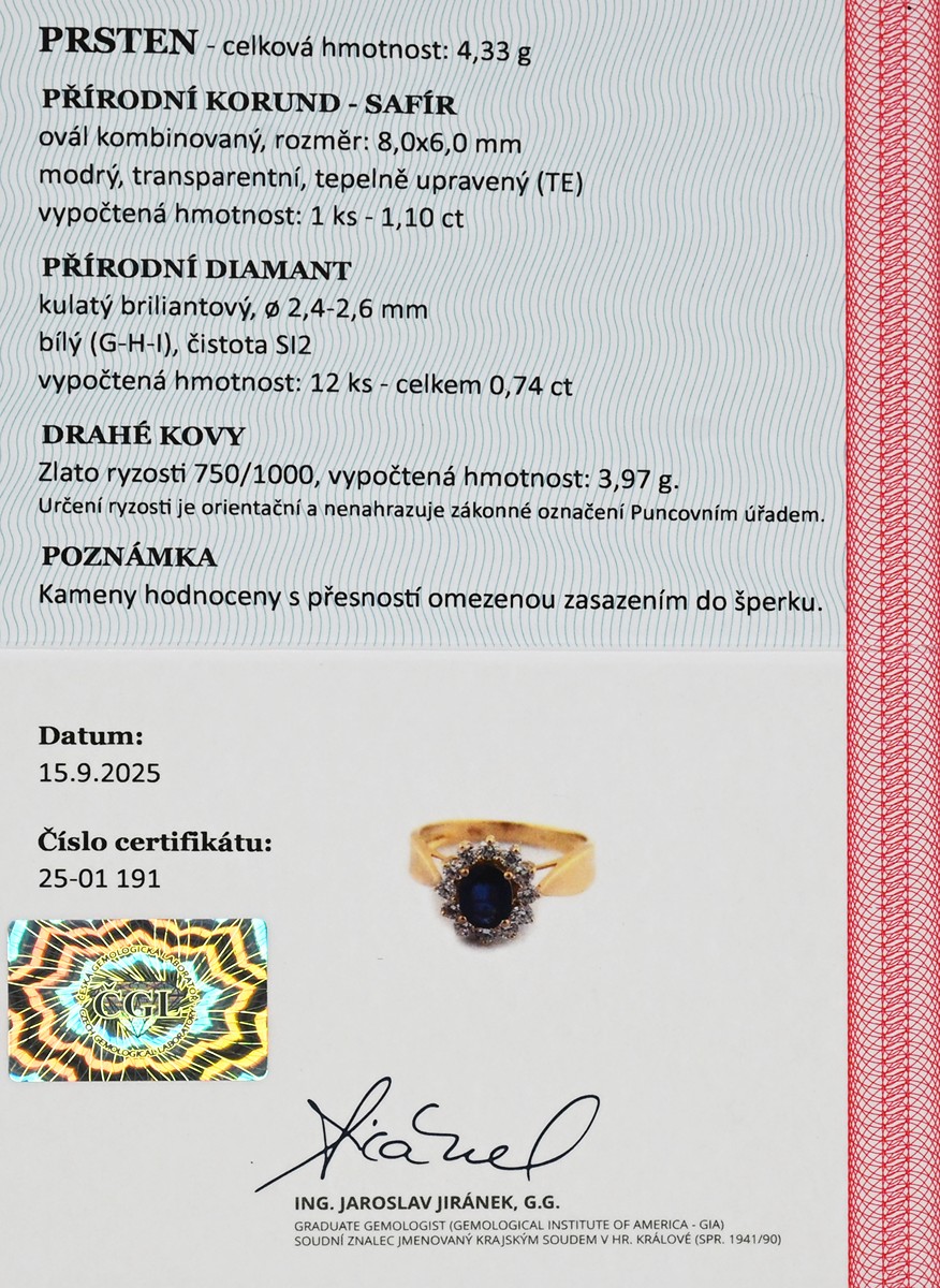 1 ks přírodní safír, 1,10 ct celkem, ovál 8,0×6,0 mm