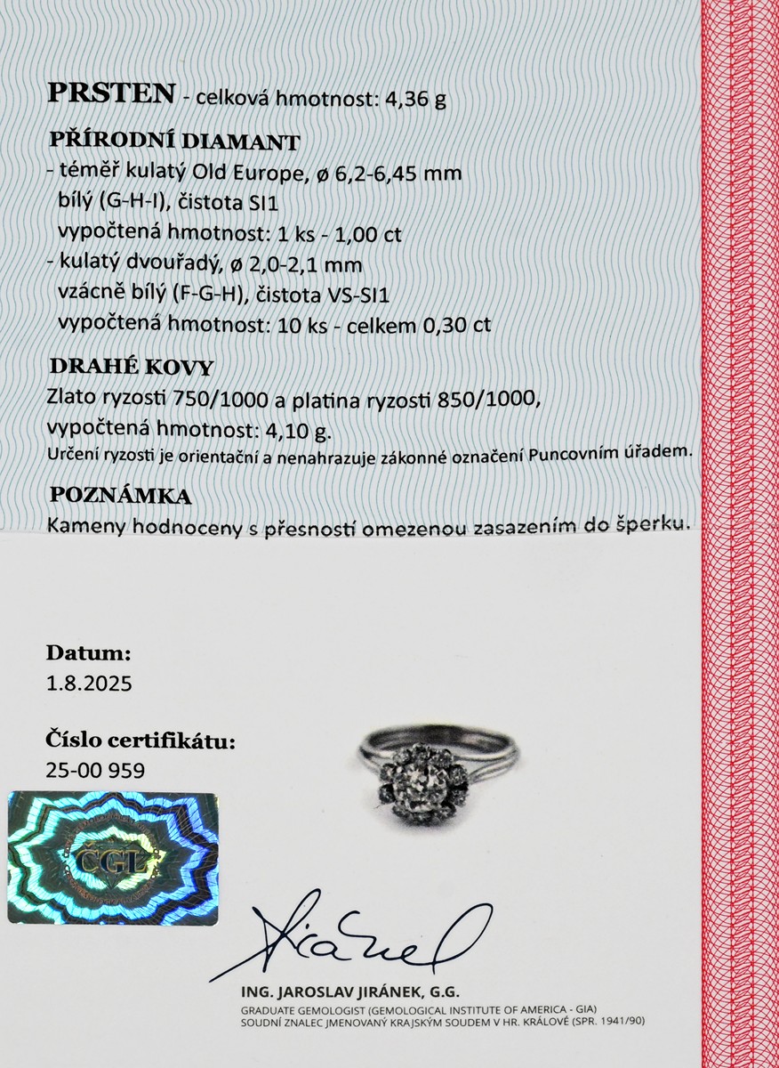 přírodní diamant Old Europe 1 ks 1,00 ct bílý (G-H-I), čistota SI1 přírodní diamant 10 ks 0,30 ct, vzácně bílý (F-G-H), čistota VS-SI1
