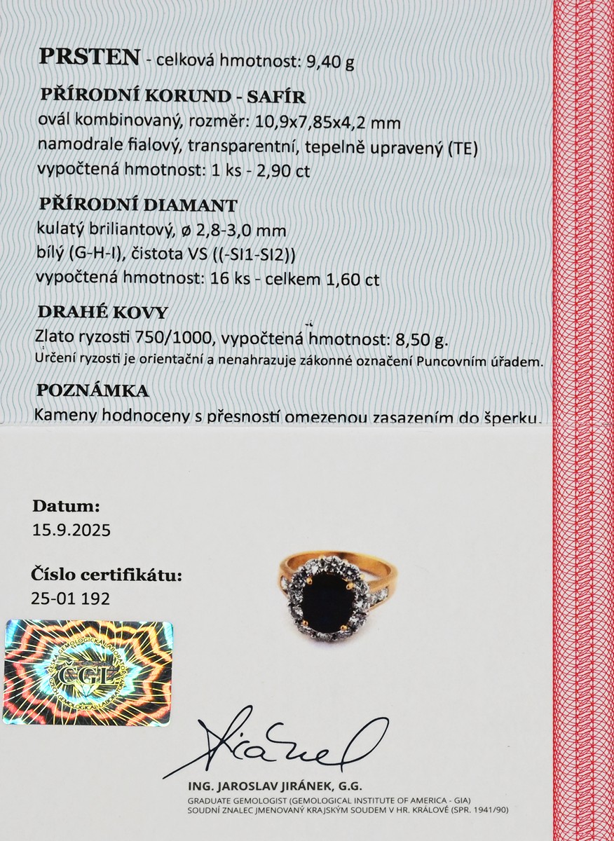 Certifikát z gemologické laboratoře je součástí šperku