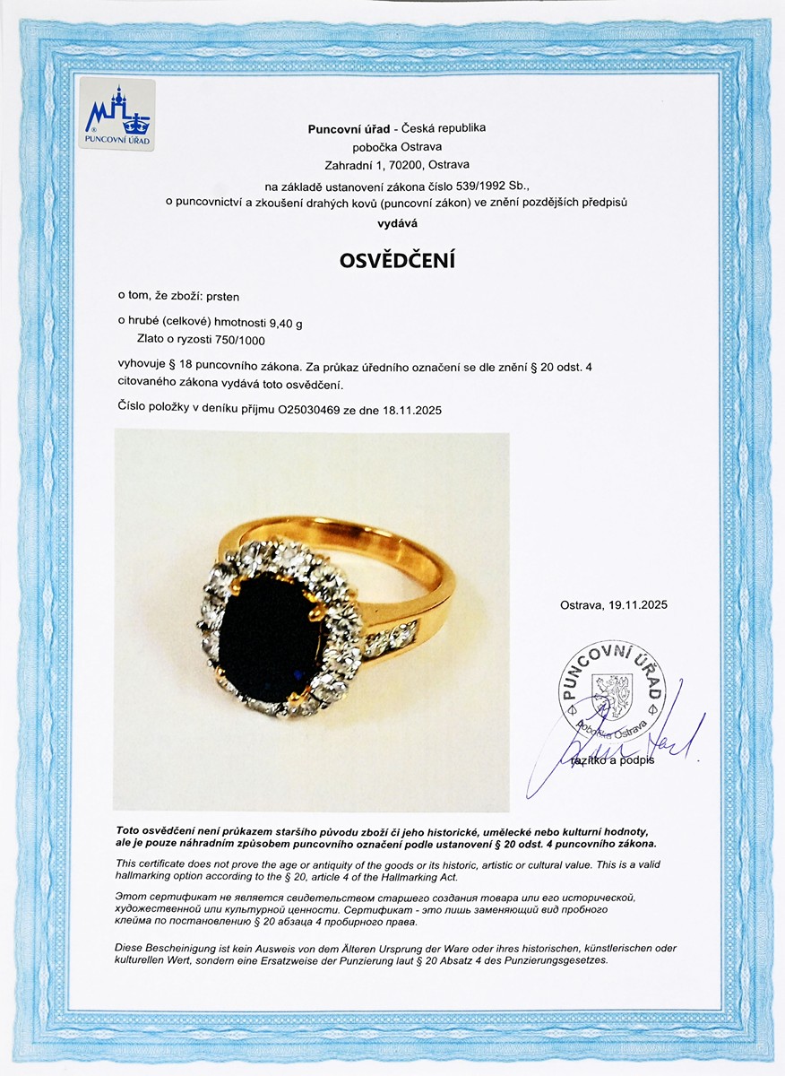 Osvědčení Puncovního úřadu České republiky