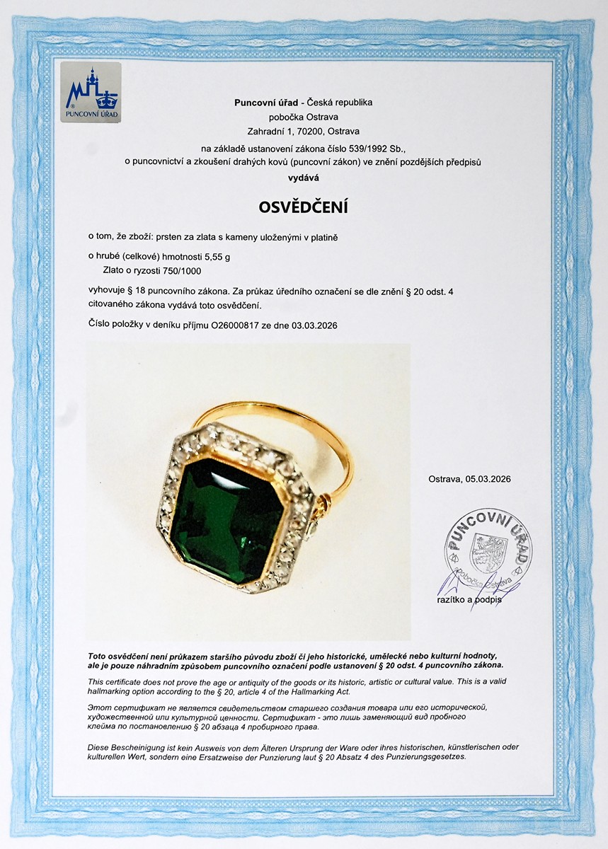– certifikát gemologické laboratoře je součástí šperku