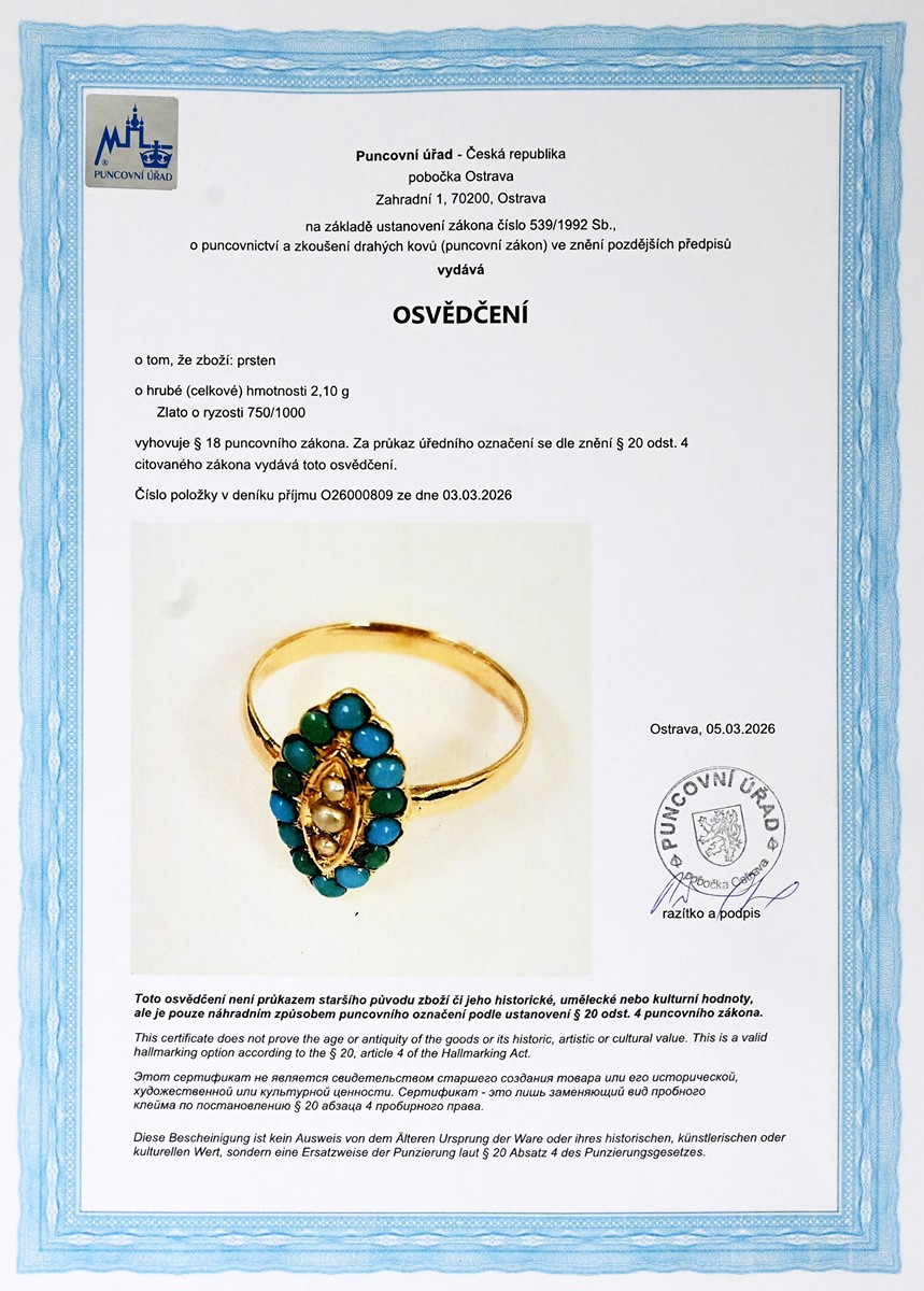 osvědčení Puncovního úřadu České republiky