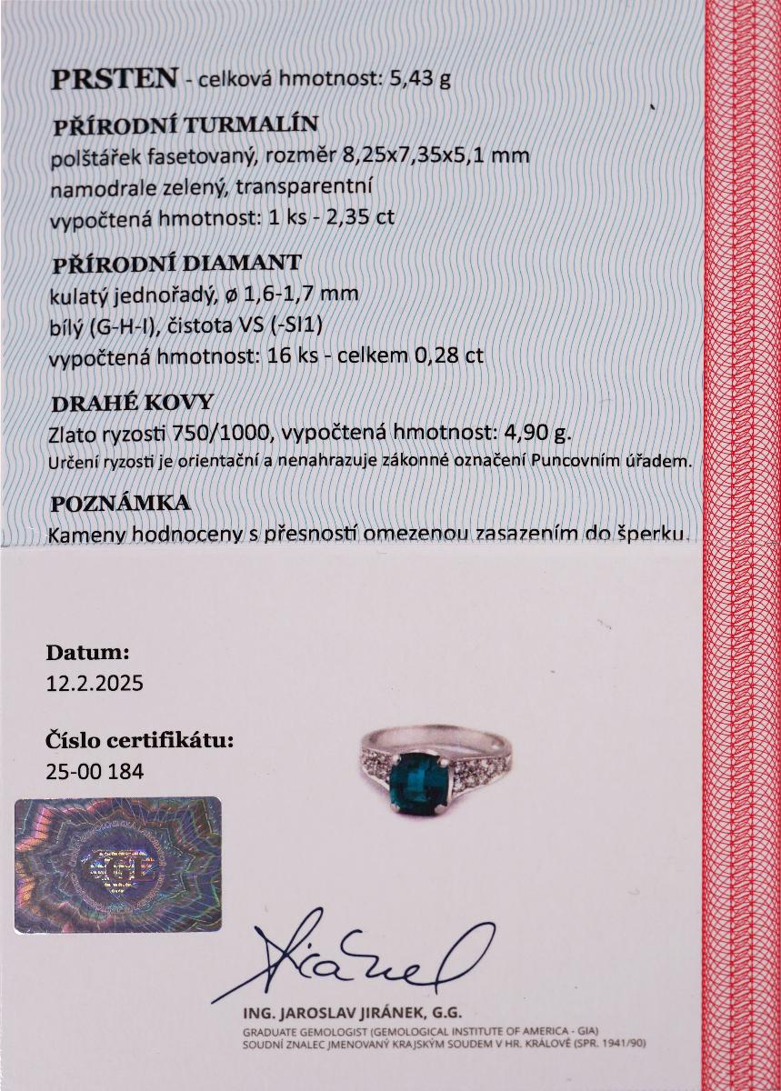 certifikát z gemologické laboratoře je součástí šperku
