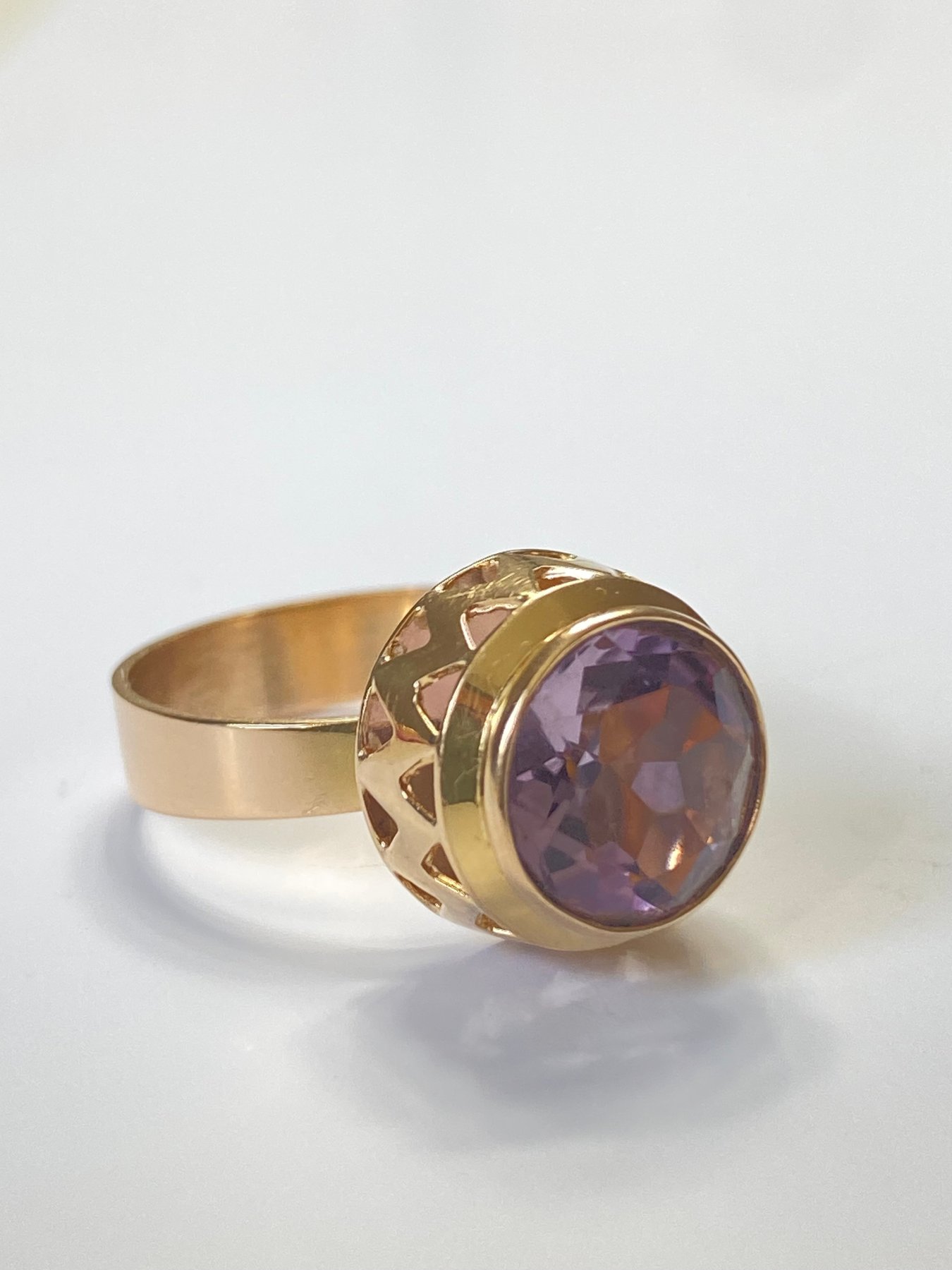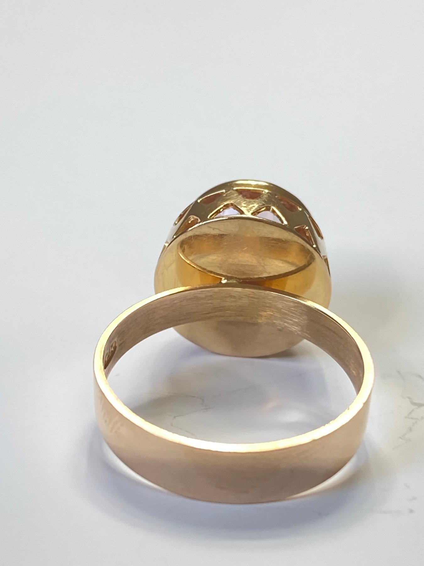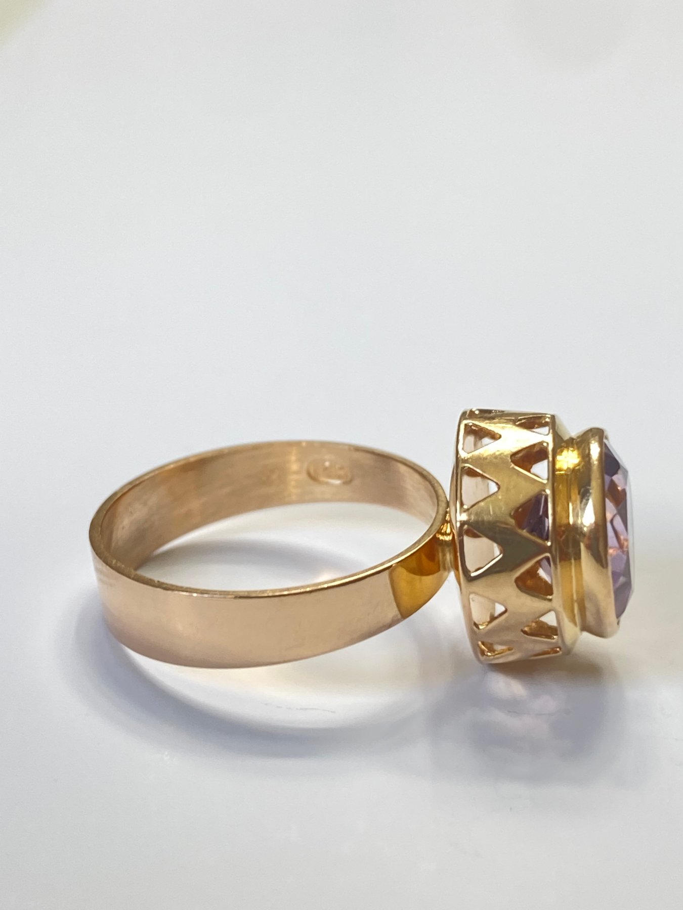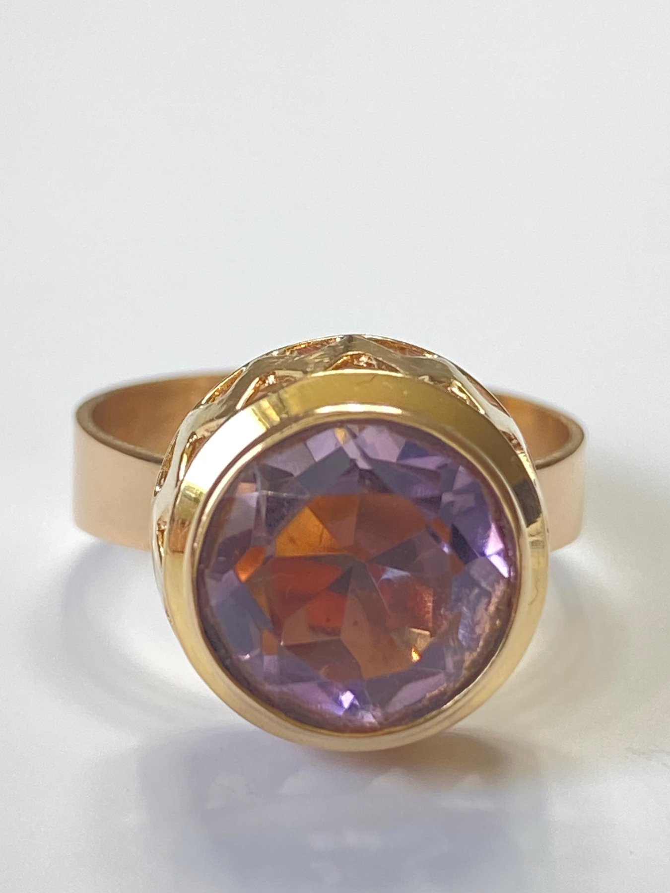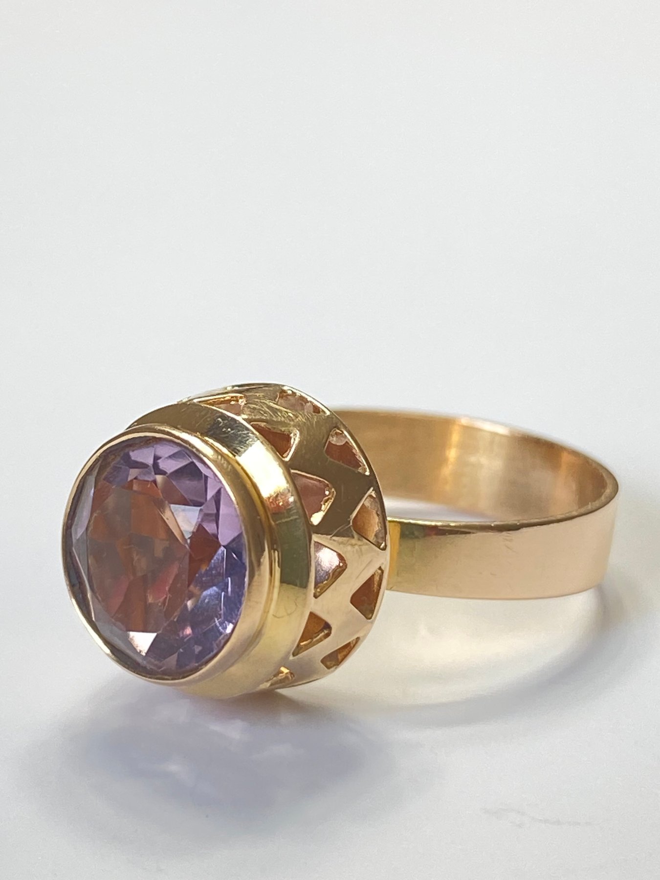 zlatý prsten se syntetickým spinelem, hmotnost spinelu je cca 3,5 ct, Au btto 4,5 g/750/100, Švédsko, kolem r. 1950, platný punc, velikost prstenu 53, změna velikosti možná