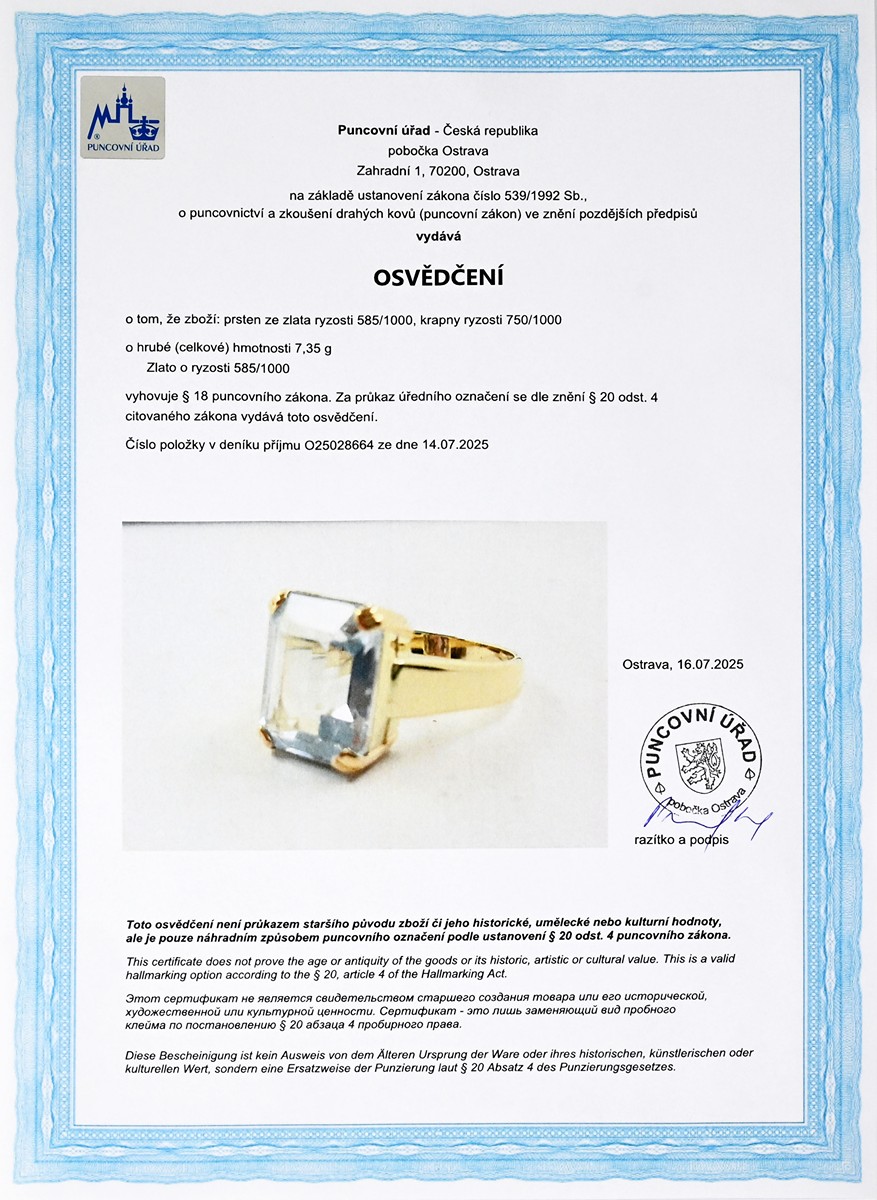 • osvědčení Puncovního úřadu České republiky