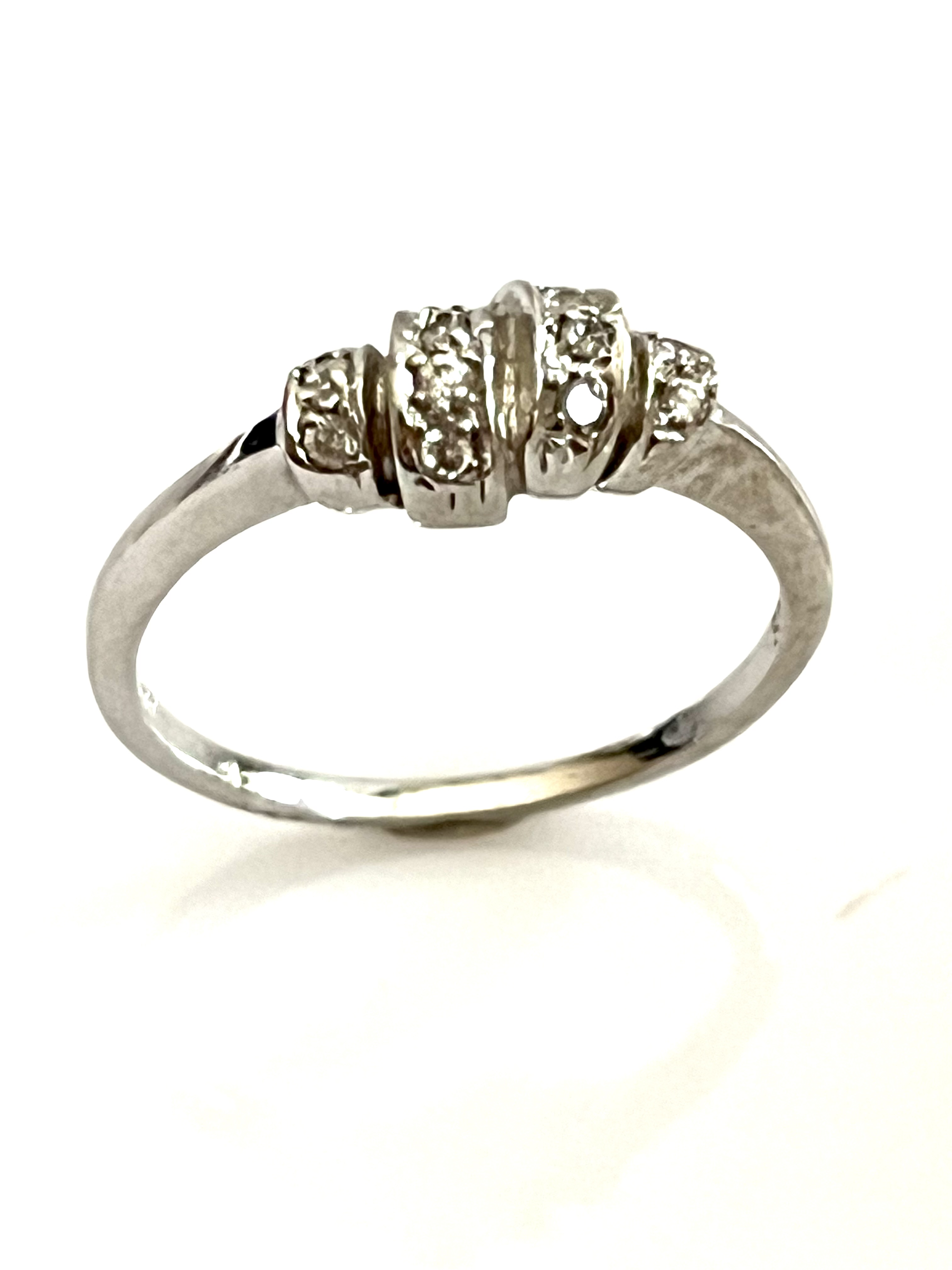 Zlatý prsten z bílého 14 karátového zlata AU585/1000, váha prstenu 2,42 gramů. Prsten vyroben v 80. letech 20. století v Itálii, v Čechách opuncován současným puncem. Velikost prstýnku