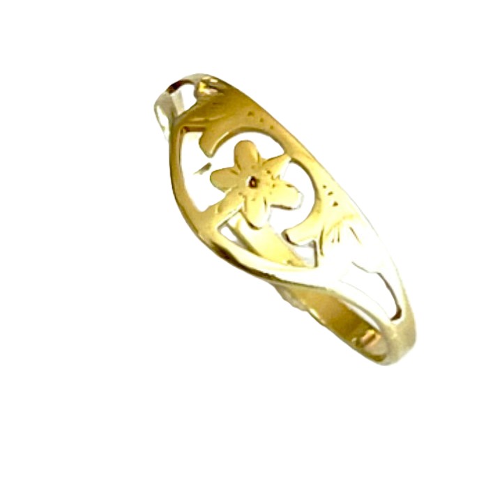 Dámský zlatý prsten ze žlutého 14 karátového zlata AU 585/1000, váha prstenu 0,960 gramů. Velikost prstýnku je 55