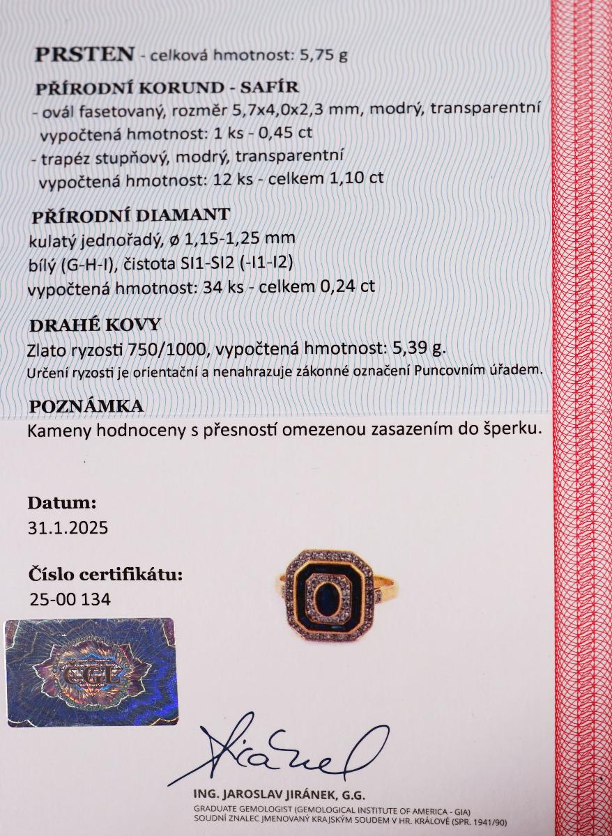 Certifikát z gemologické laboratoře je součástí šperku