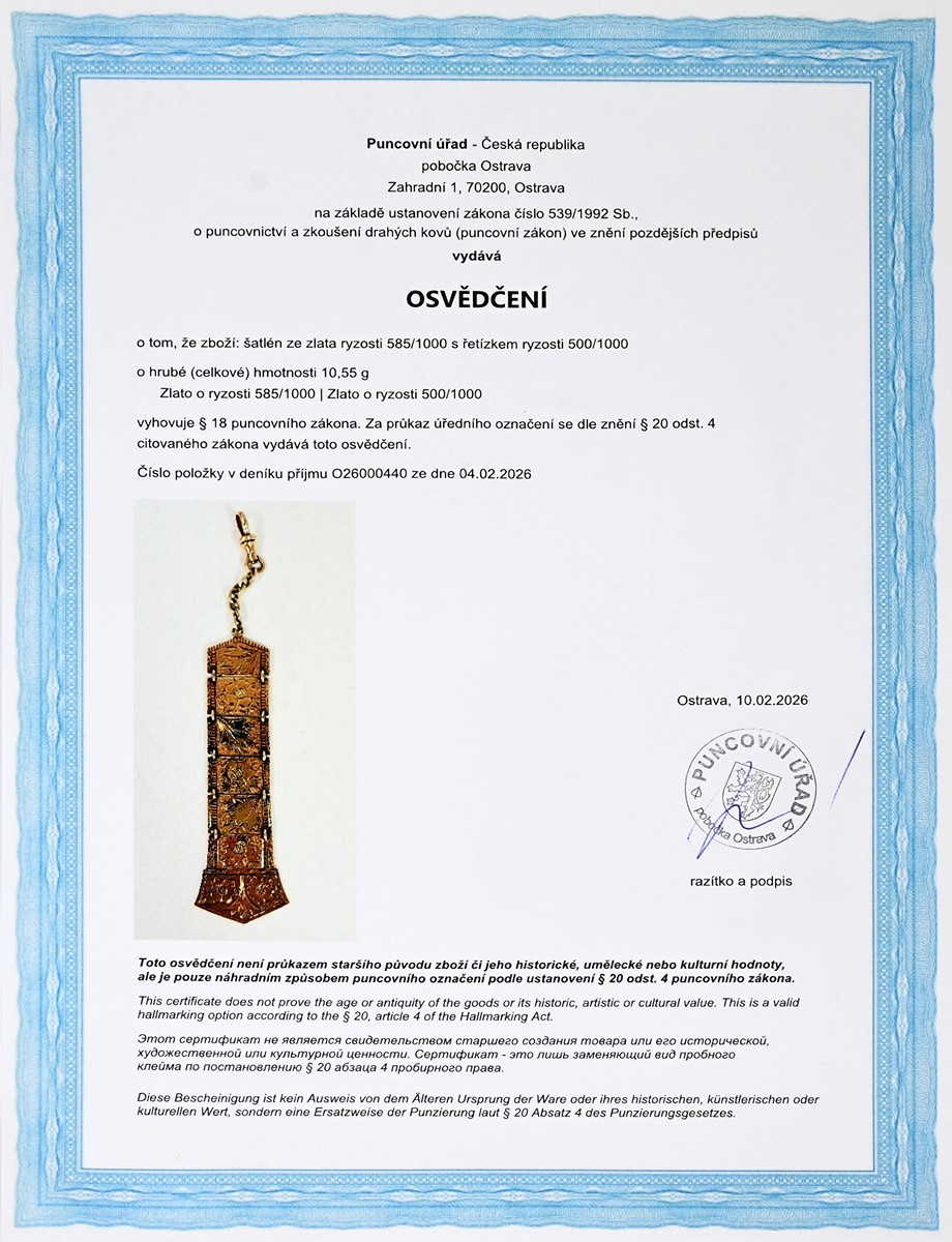 – osvědčení Puncovního úřadu České republiky