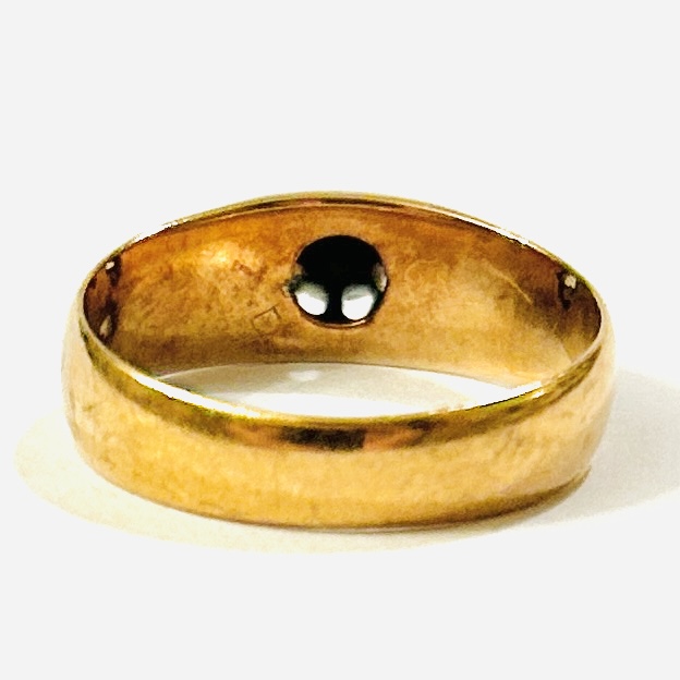 Zhotoveno z narůžovělého 14 karátového zlata, tj. o ryzosti 580/1000; rakousko-uherský punc Z-27 (liška 4) s písmenem \“A\“ (značící vídeňský puncovní úřad) a mistrovská značka \“WH\“ zevnitř šíny. Hmotnost 3,46 g, velikost 53, šířka 6 mm. Stopy nošení, jinak v dobrém stavu.
