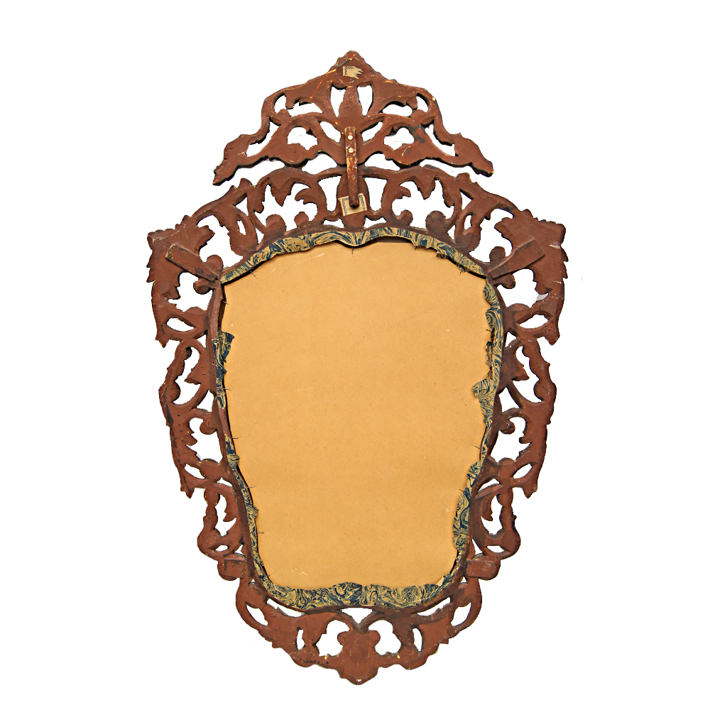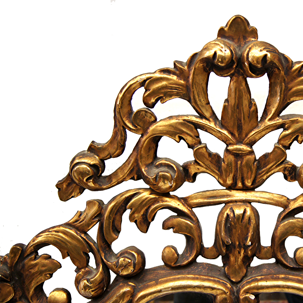 Zlacený sádrový štuk, dřevěná kostra, výška – 106 cm, šířka – 69 cm, v původním dobrém stavu, místy mírně podřené, staré, dobrý stav